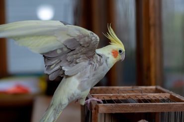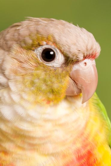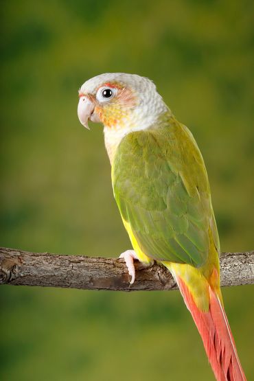 This is Kiwi. A young 6 month old Indian Ring neck parrot. Kiwi came from a breeding situation and is not very tame. He's a bit skittish and afraid of hands. His brother Wasabi is also very skittish and not tame. We are working with both of them to help them be a bit more hand-able. ( Available for adoption)